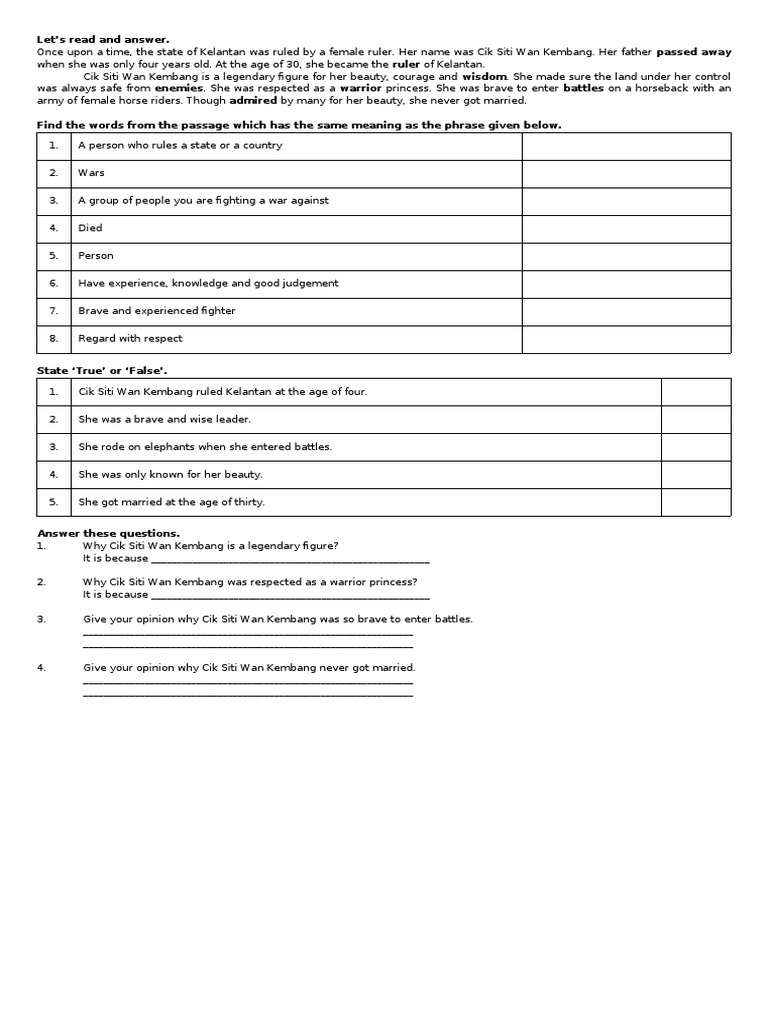 Cik Siti Wan Kembang Year 5 Worksheet from files.liveworksheets.com An edition of cik siti wan kembang (1992). Pengkisahan ceritera cik siti wan kembang merentas zaman oleh penulis buku yang berbahagia datuk paduka prof. Learn vocabulary, terms and more with flashcards, games and other study tools. Che siti was famous for her beauty and wisdom. Give a hand to lighten the burden. She is believed to have ruled in the 14th century. April 28, 2010 | history. 320 x 266 jpeg 43 кб.
