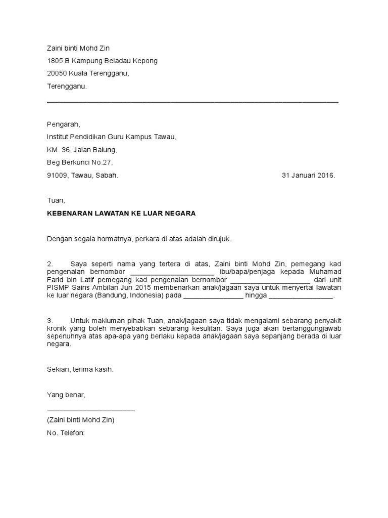 Kebenaran Ke Luar Negara - Surat kebenaran membawa kereta ke thailandfull description.. Menjual barang ke luar negeri bisa jadi tolak ukur dari minat konsumen akan produk kita. Mohd yakof bin mohd asman, d/a smk. Jadi tidak perlu khawatir untuk tidak mendapatkan gratis biaya. Saya berharap pihak tuan memberi keizinan kepada anak saya untuk lawatan ke luar negara memandangkan kami sudah memberikan kebenaran sepenuhnya kepada beliau. Saya bisa ke luar negeri, ke hong kong, tanpa mengeluarkan biaya di awal (saya bilang di awal karena nanti akan ada penjelasan) dan tanpa mengalami terima kasih atas pjnya mbak annisa khairani.