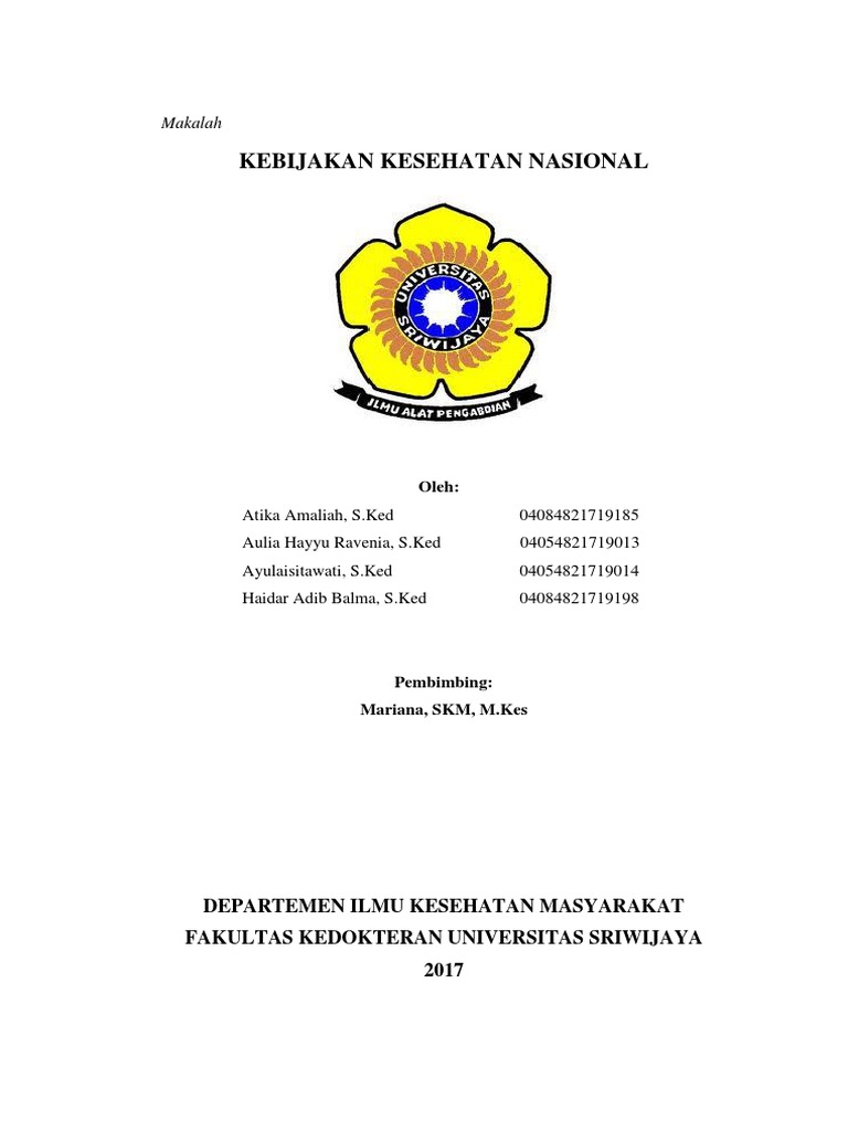 Makalah kebijakan publik berjudul pengaruh reformasi kebijakan pelayanan kesehatan melalui sop terhadap tingkat kesehatan di indonesia semoga makalah kebijakan publik berikut ini dapat. Diskripsi dan relevansi evaluasi kebijakan dalam perspektif alur proses/siklus kebijakan publik, menempati posisi terakhir setelah implementasi kebijakan, sehingga sudah sewajarnya jika. Kebijakan kesehatan merupakan kebijakan publik. Kebijakan kesehatan bab i pendahuluan 1. Kebijakan kesehatan adalah termasuk dalam kebijakan publik, yang berarti semua kebijakan pemerintah yang berkaitan dengan pelayanan kesehatan terhadap masyarakat.
